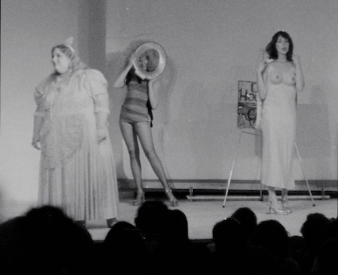 In 1974 Les Nickelettes were doing bi-monthly performances at the Intersection Theater in San Francisco’s North Beach. The rudimentary skits were intentionally under rehearsed, but had a compelling energy of anarchistic female humor.