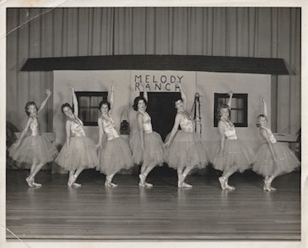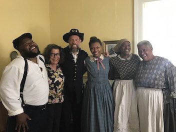 Betsy Newman: I Never Had a Plan. My first theater experience was in the 1st or 2nd grade when I was cast as a jack-in-the-box in the school play. I cried because people laughed when I popped out of the box and I wanted to quit. My parents bribed me with a doll and then I got into it and played it for laughs. But the day of the show I developed the mumps and couldn’t go on. Terribly disappointing! In Junior High I was in a play about a purple cow for which I made a purple cow head out of papier-maché. The Melody Ranch picture is from that same era. I’m the fourth from the left. My first Nickelettes show! (OK it was a dance recital, but still…). I fell in love with theater and went on to get a masters degree in it, after which I went to San Francisco and met Stafford Buckley who introduced me to the Nickelettes. Those years were the most fun of my entire life! Anyhow, all these theatrics led me to where I am now, a producer for South Carolina public television – go figure! I won an Emmy in 2018 for a documentary called Charlie’s Place https://video.scetv.org/video/charlies-place-uwaqqt/. My most recent project is an online interactive history of Reconstruction based around 360° vignettes (www.reconstruction360.org). Here’s a picture of me and the cast yucking it up.